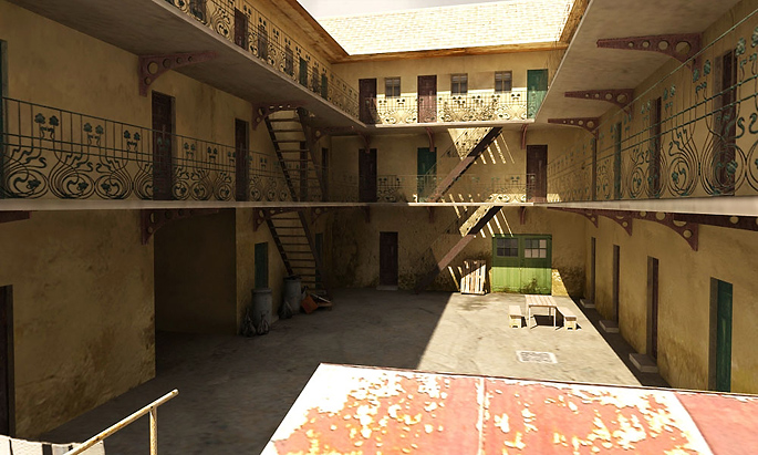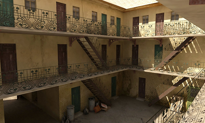 Scéna byla vytvořena dle požadavek na modelování a texturování pro hry. Podtrhuje zašlou atmosféru z přelomu minulého století, aby vtáhla hráče hlouběji do kontextu celé hry... Specifické je využití tzv. ,,zapečených textúr,, které vypadají stejně jako objekt ve finálním rendru - zahrnují barvu objektu, odlesky,stíny a lomy světla v jedné zloučené textuře.