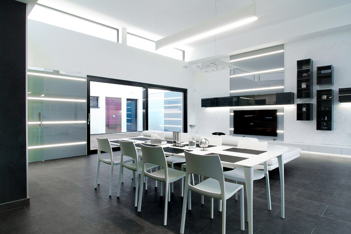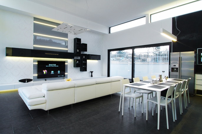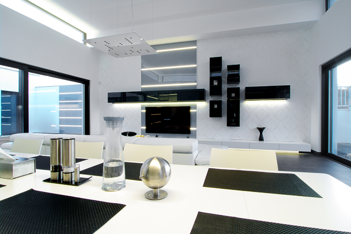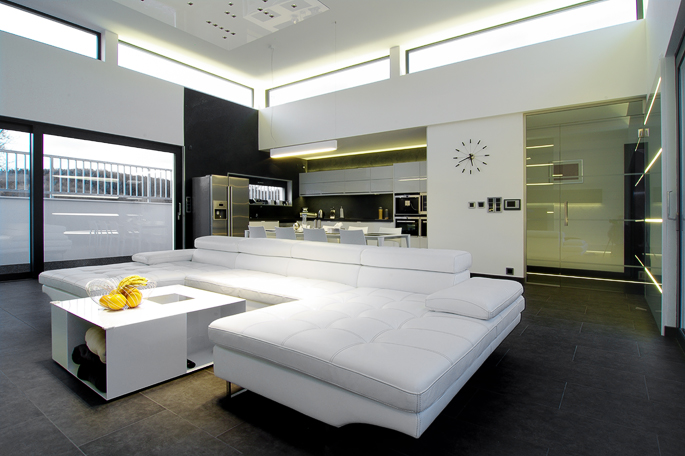 Světlý a útulný obytný prostor s moderními prvky