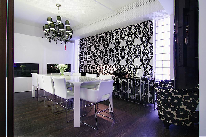 Interiér kanceláře působí reprezentativně a zároveň útulně díky kombinaci tmavých tónů dřeva, černých detailů a decentního osvětlení.