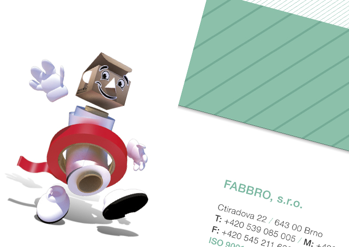Značka Fabbro je svými klienty vřele doporučována. Firma, která se zaměřuje na obalové technologie. Klient si přál zmodernizovat tvář grafických materiálů a webu. Na portofoliu produktů a služeb je ukázáno jak se celá firma bude prezentovat do budoucna. Maskot, je sympatický krabičák, který provází všechny materiály společnosti.