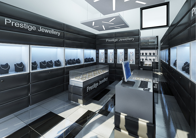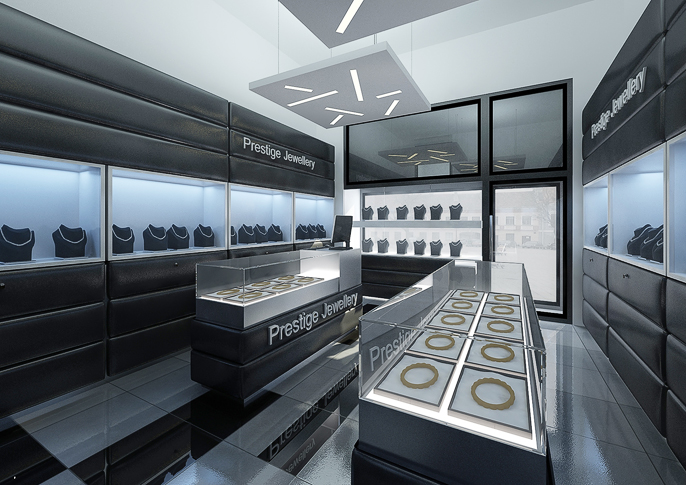 Design interiéru zlatnictví v kůži