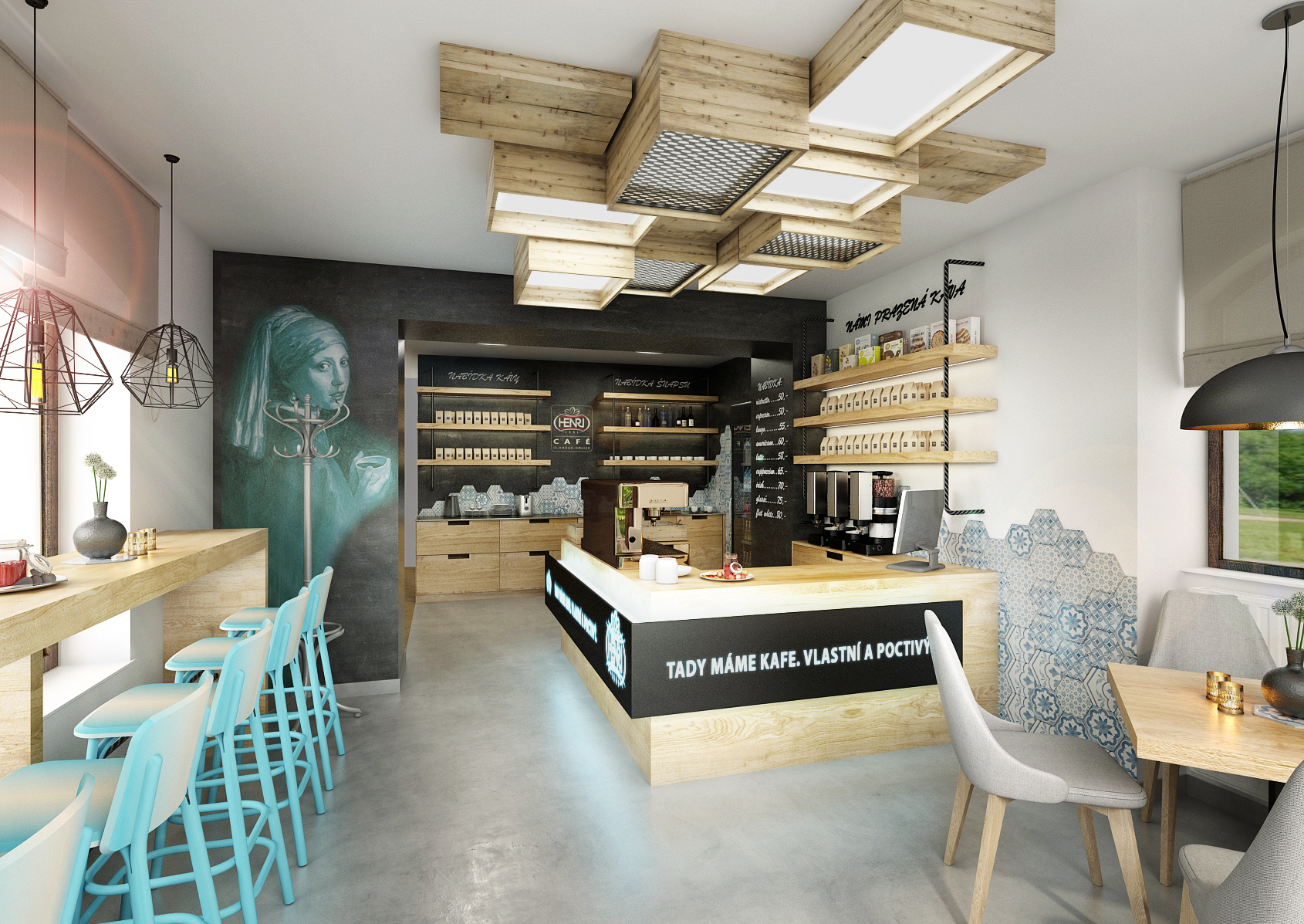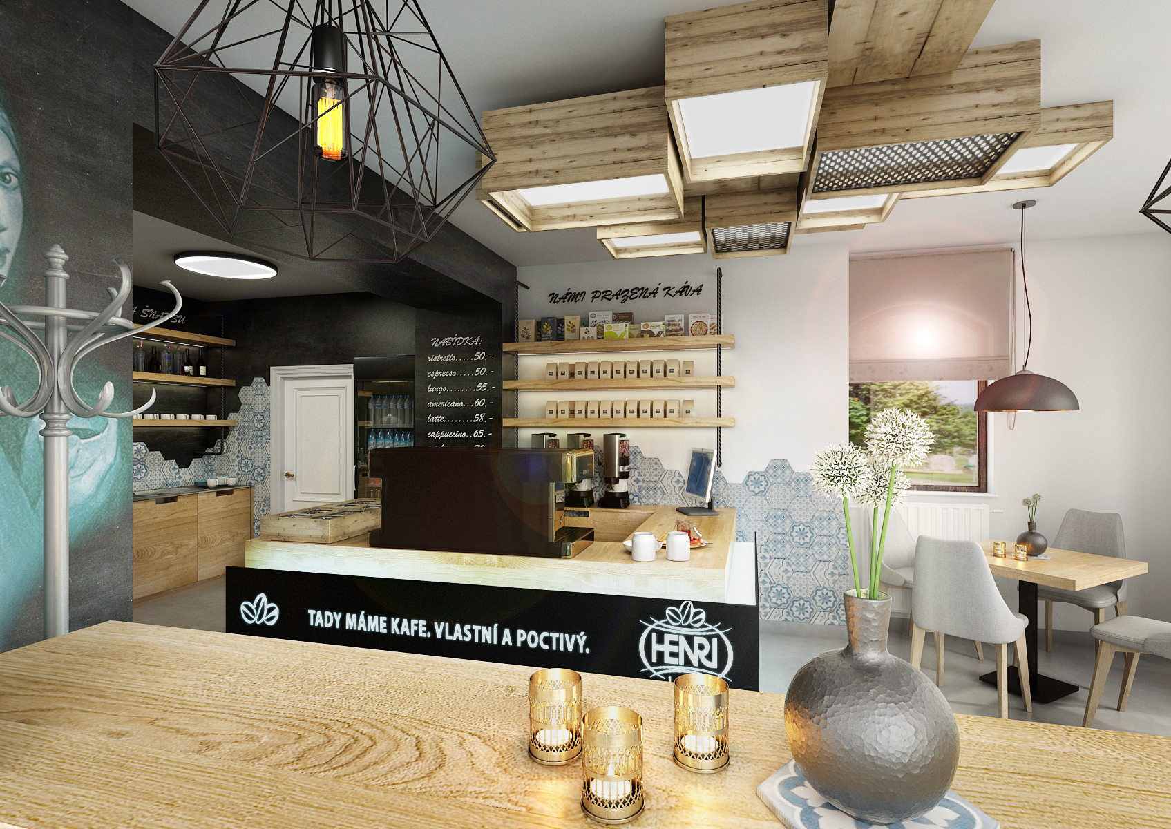 U pražírny kávy byla otevřena kavárna s prodejnou, zařízená ve stejném stylu