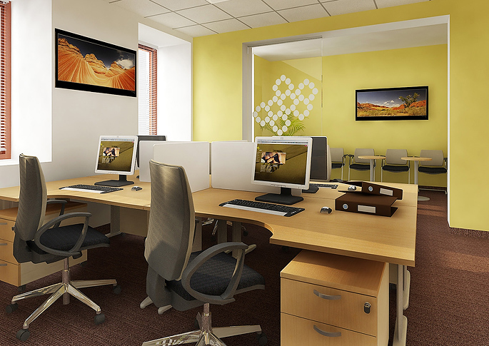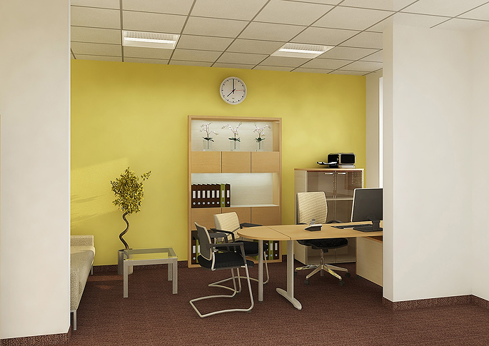Kanceláře se žlutou výmalbou