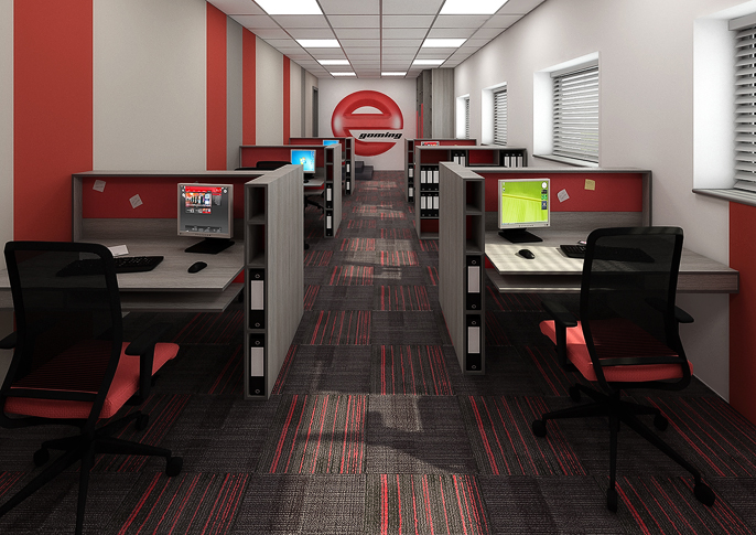 Návrh interiéru kanceláří s blikajícími pixely