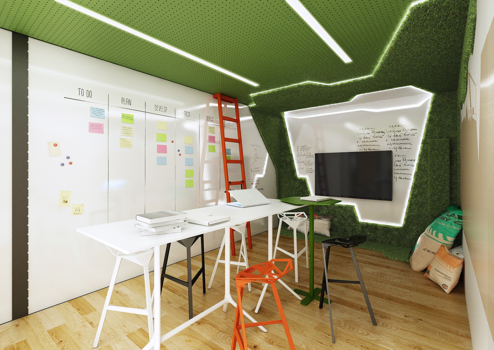 Originální kanban prostor s multimédii