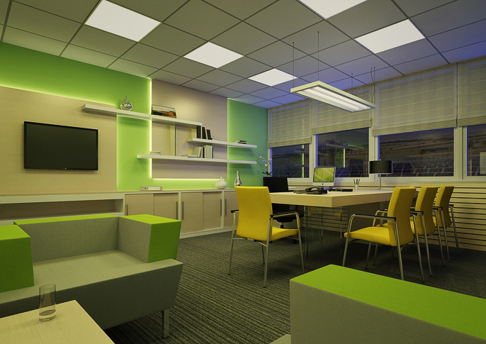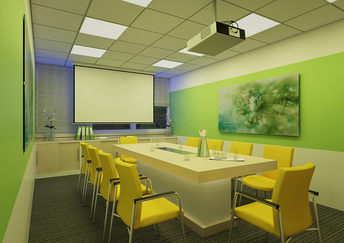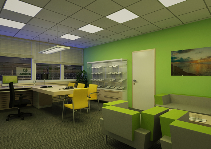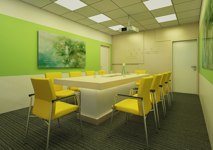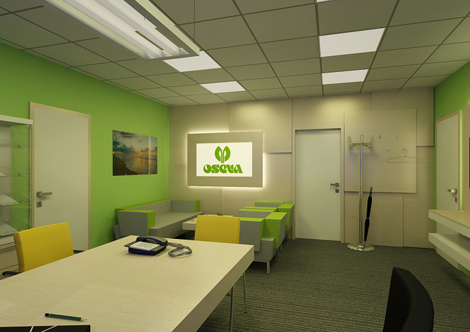 Prakticky řešená prostorná kancelář s relaxačním koutem se sedačkami Vario od RIM . Prostorné pracoviště umožňuje i pohodlné menší jednání, potřebný úložný prostor je řešen elegantně a odlehčeně. Barevná skladba je v návaznosti na firemní grafiku a design manuál. Ve stejné filozofii je řešena i zasedací místnost s projektorem.