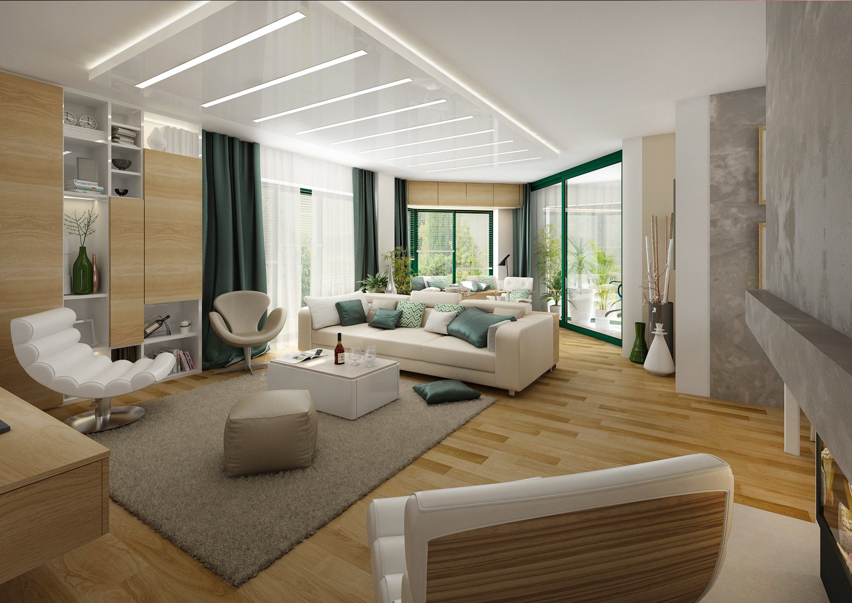 Rodinný dům ve světlých tónech s akcentem zelené