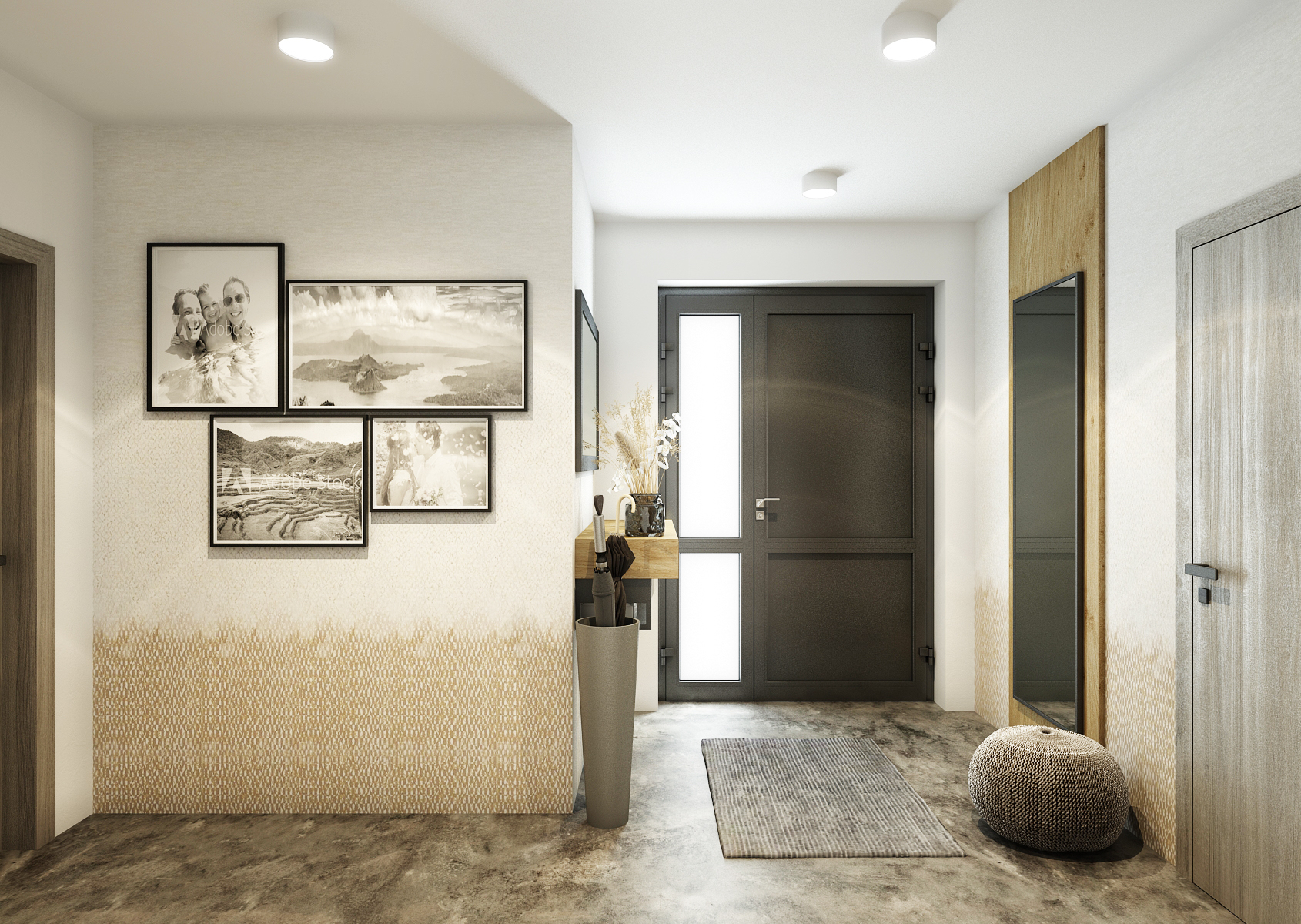 Betonová stěrka v kombinaci s tapetou