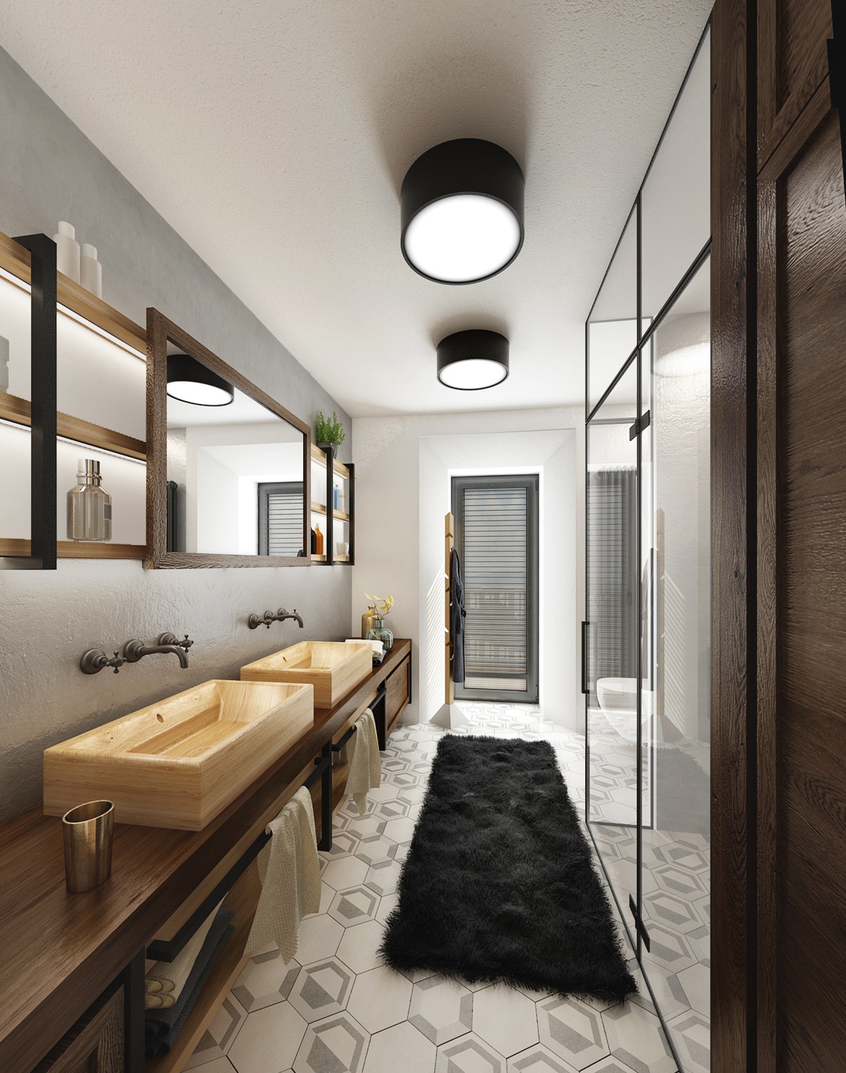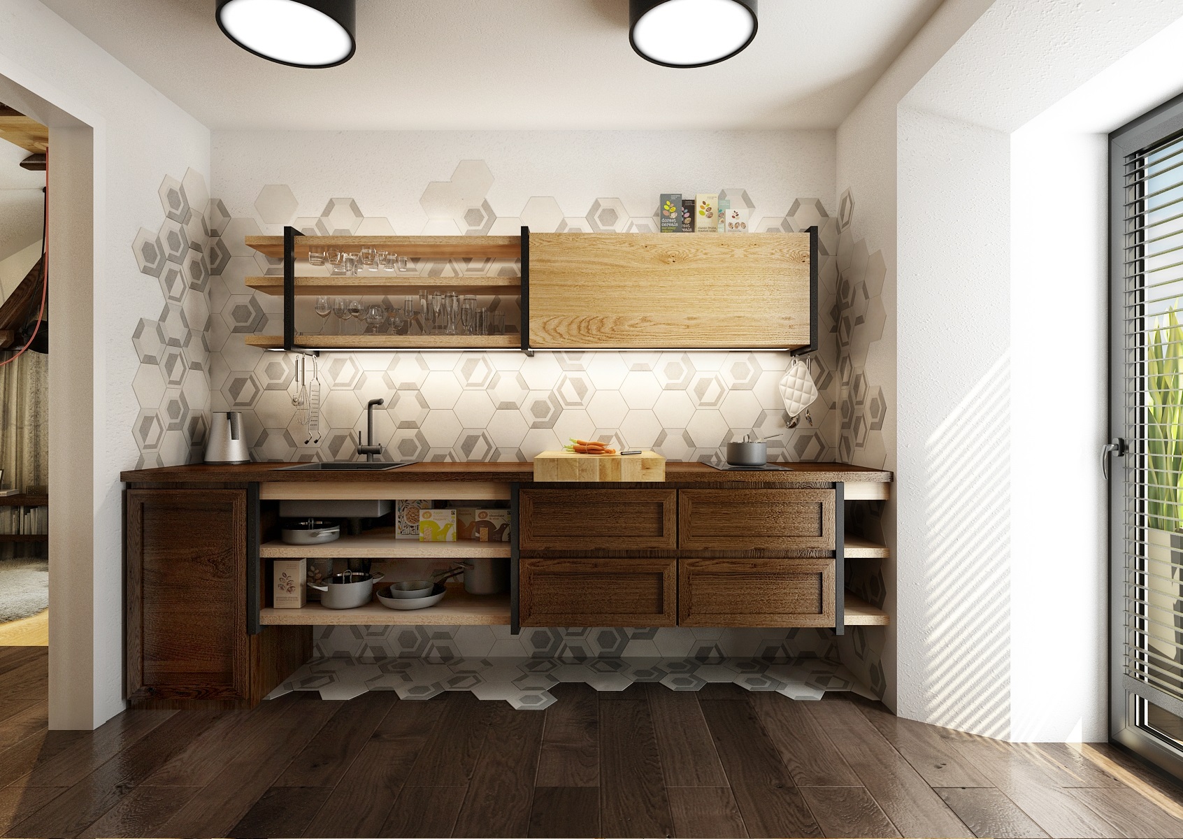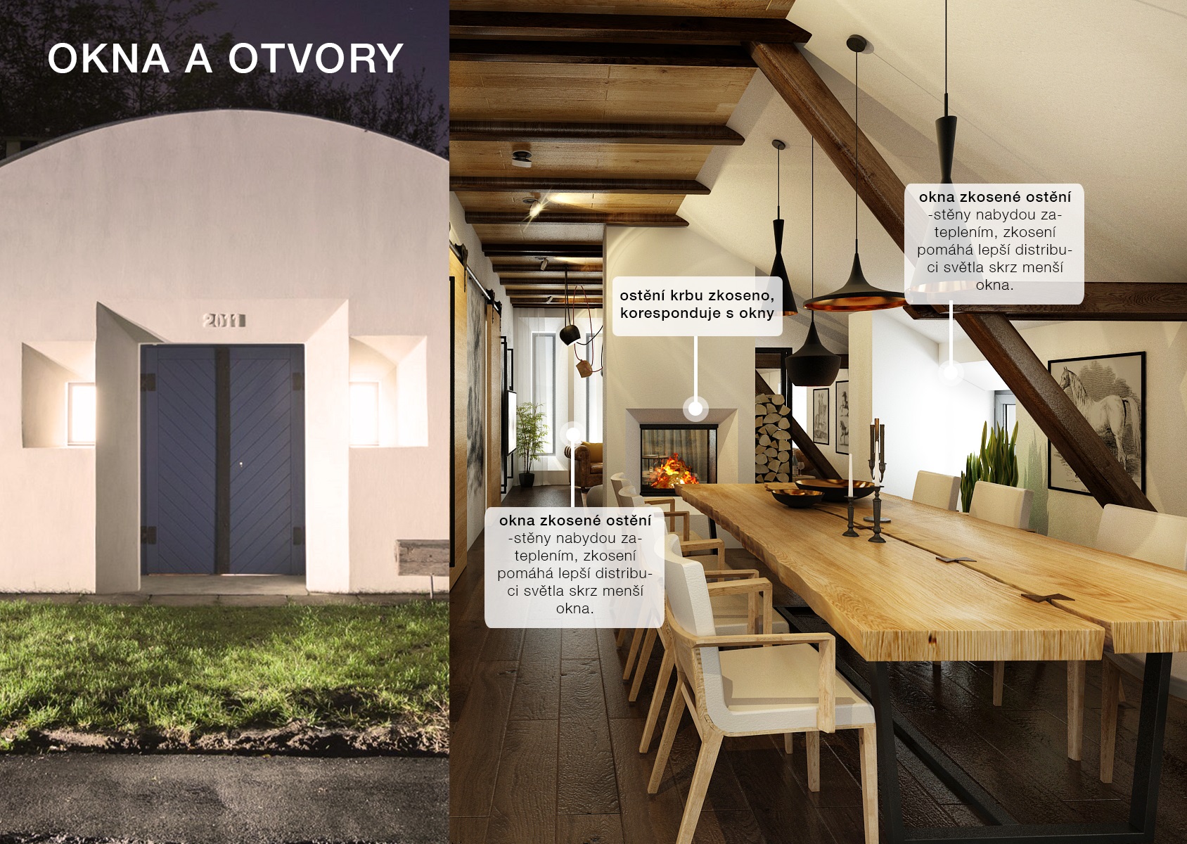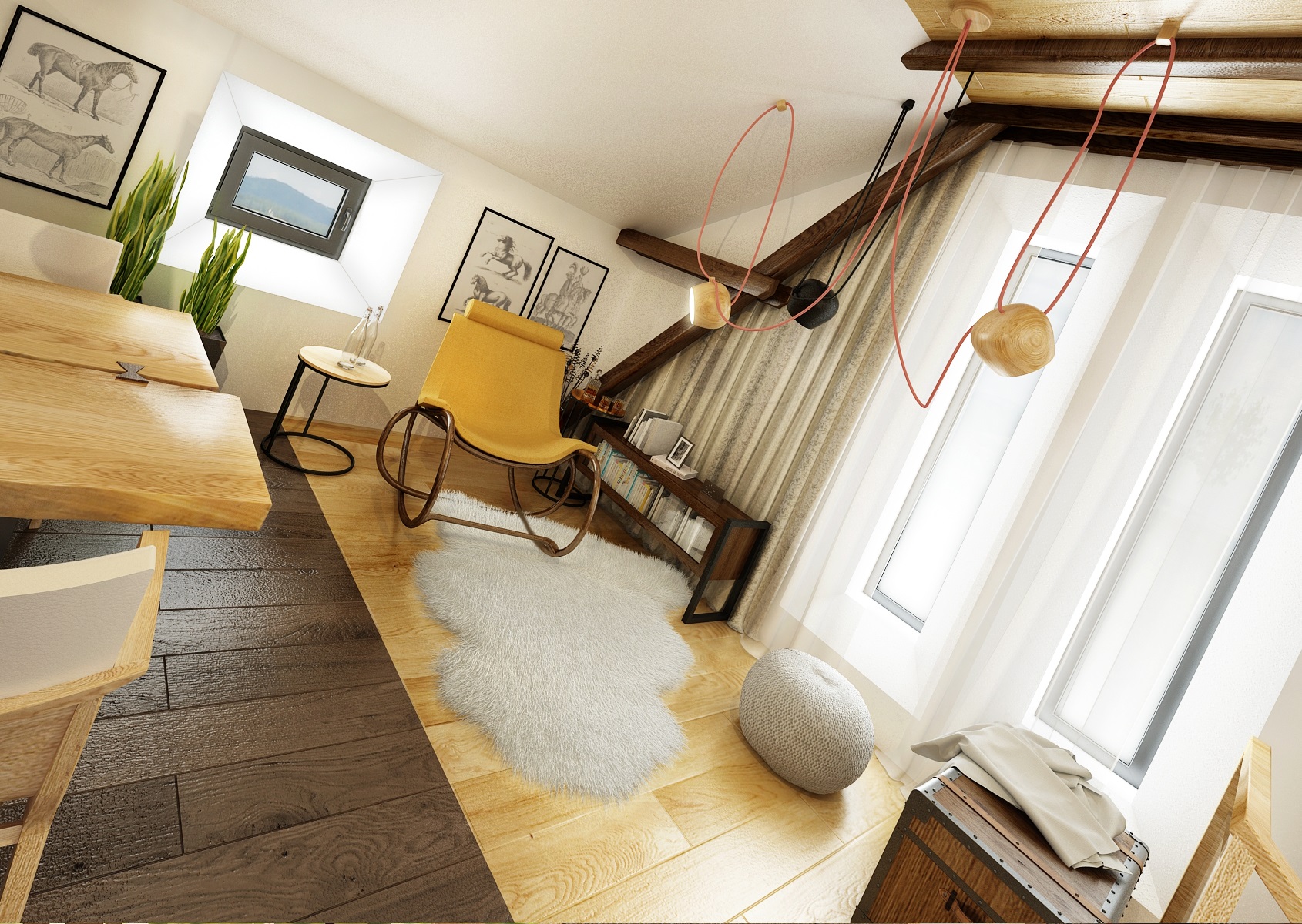 Návrh rekonstrukce půdního prostoru bývalého hospodářského stavení na privátní bydlení. V zadání znělo vytvořit moderní byt s venkovskou tématikou. Hlavní roli hraje masiv, dub, s přírodním a s tmavým mořením, vhodně doplněný černým jeklem. Interiérové posuvné dveře jsou zavěšeny na pojezdovém kování, jako mívají vrata do stodoly. Zůstal přiznaný dřevěný krov a nechybí ani krbová kamna, retro obklady použité v kuchyní a koupelně, stylový nábytek a dekorace, jako jsou například tapeta a kresby s motivem koní.