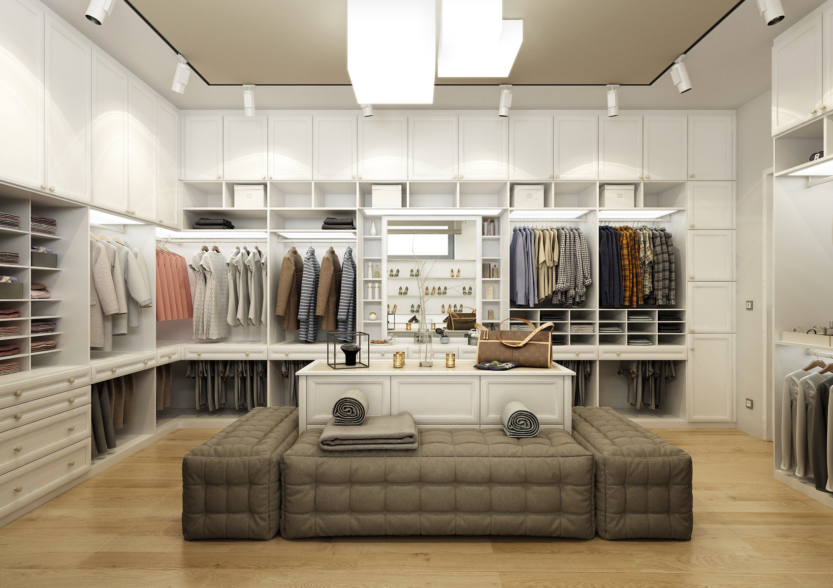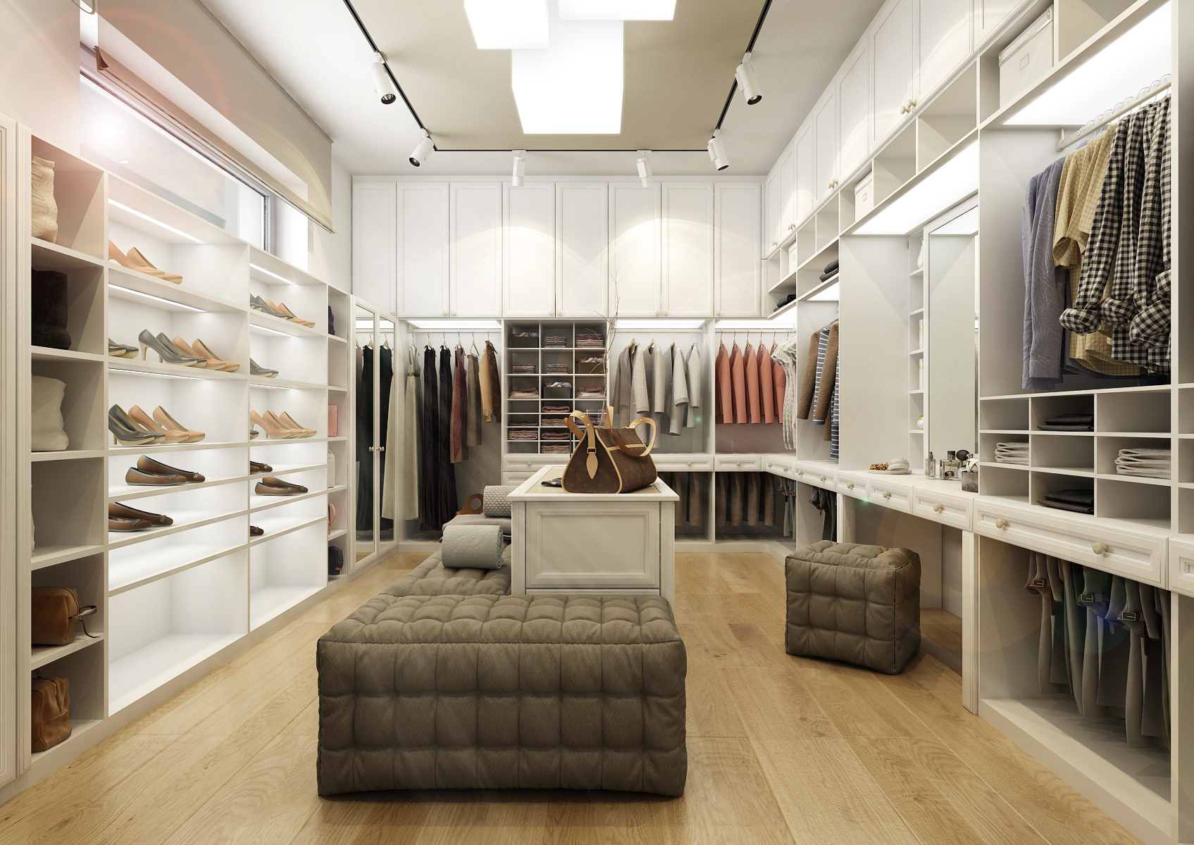 Už v samotném projektu domu bylo počítáno s úložnými prostory a tak vznikla plochou velkorysá šatna pro paní domu. S dubovou vinylovou podlahou, v čistém bílém provedení, s profilovanými dvířky. Nechybí ani toaletní stolek s velkým zrcadlem a polstrované taburety pro pohodu při výběru i oblékání.