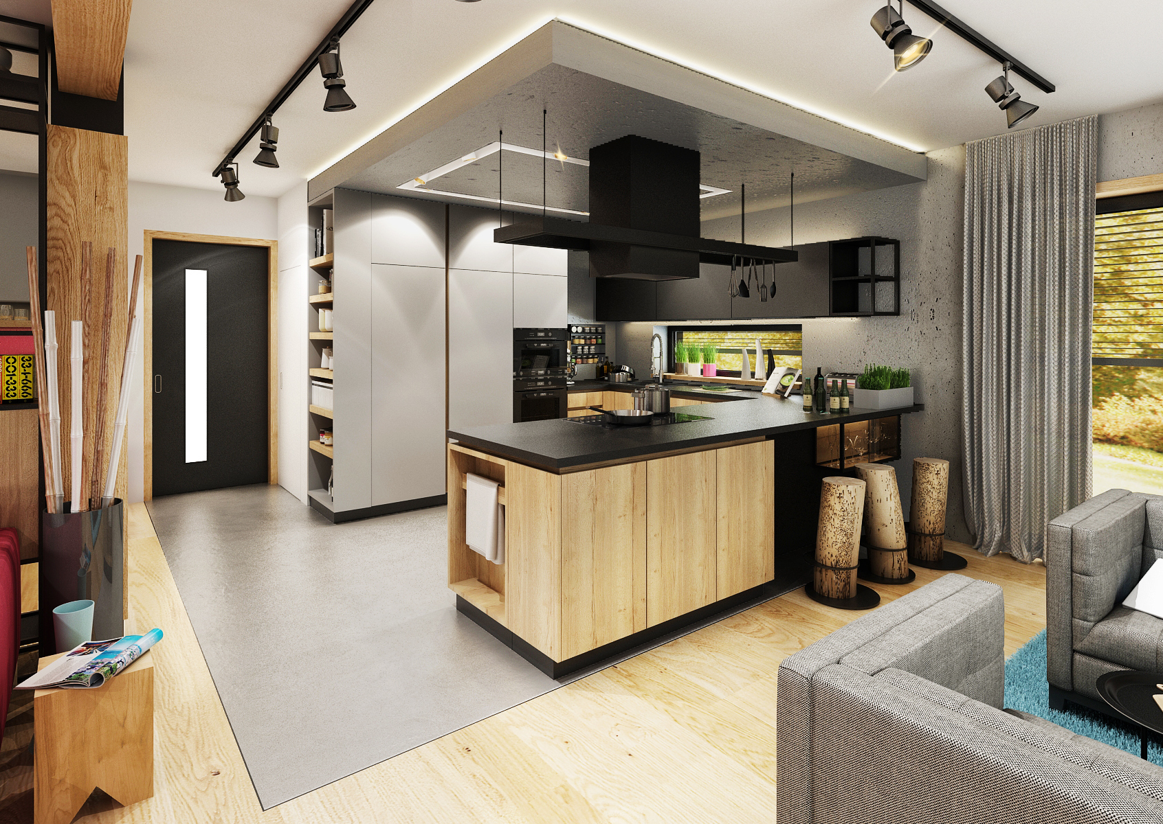 Návrh moderní kuchyně s tmavými prvky