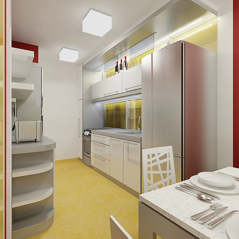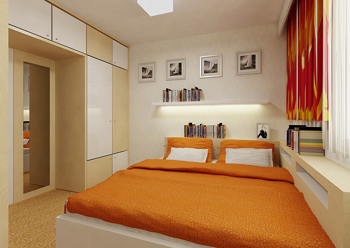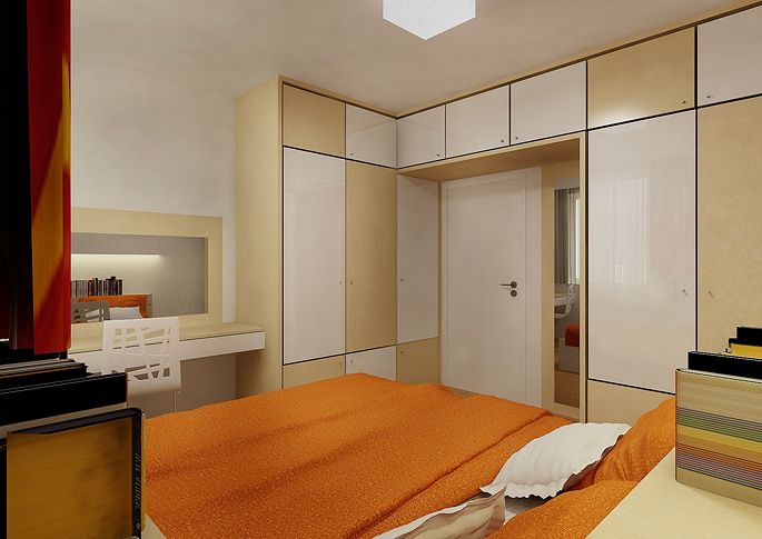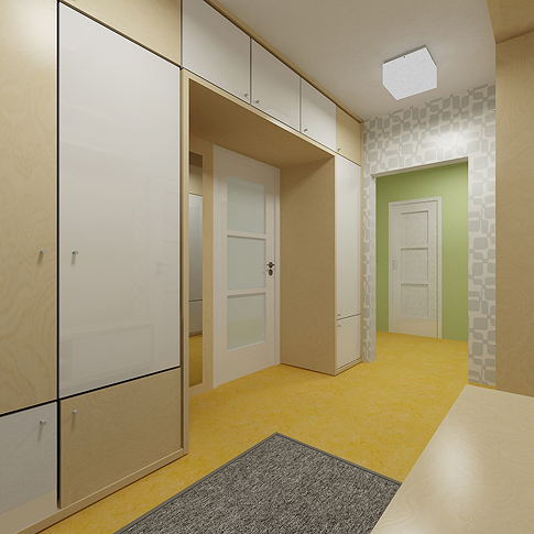 Kompletně zrekonstruovaný panelový byt je funkčním řešením společných prostor předsíně, kuchyně, obýváku s důrazem na jednoduchost, praktičnost a úsporu místa. Pokoj pro studenta je nápaditým a originálním řešením.