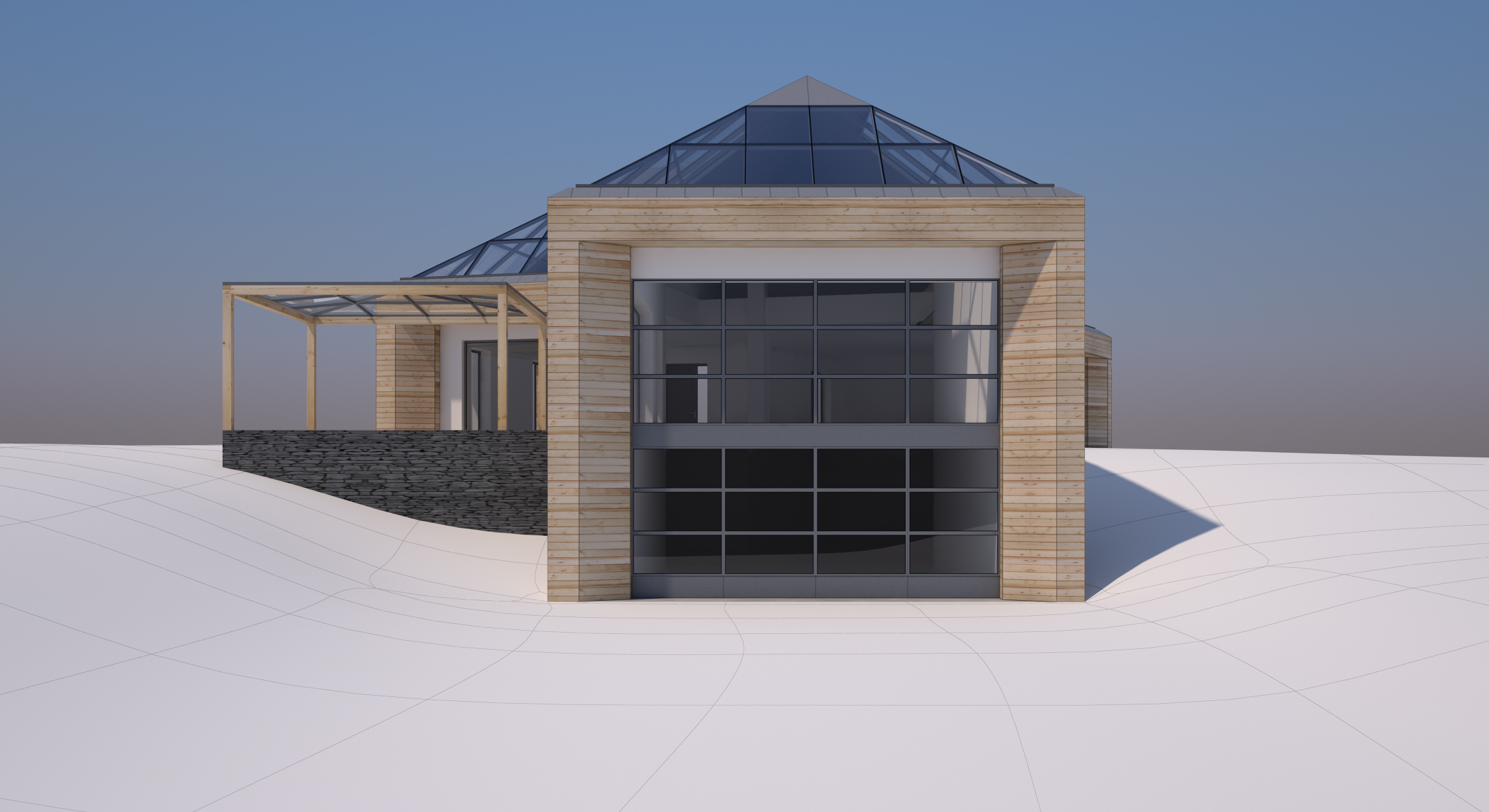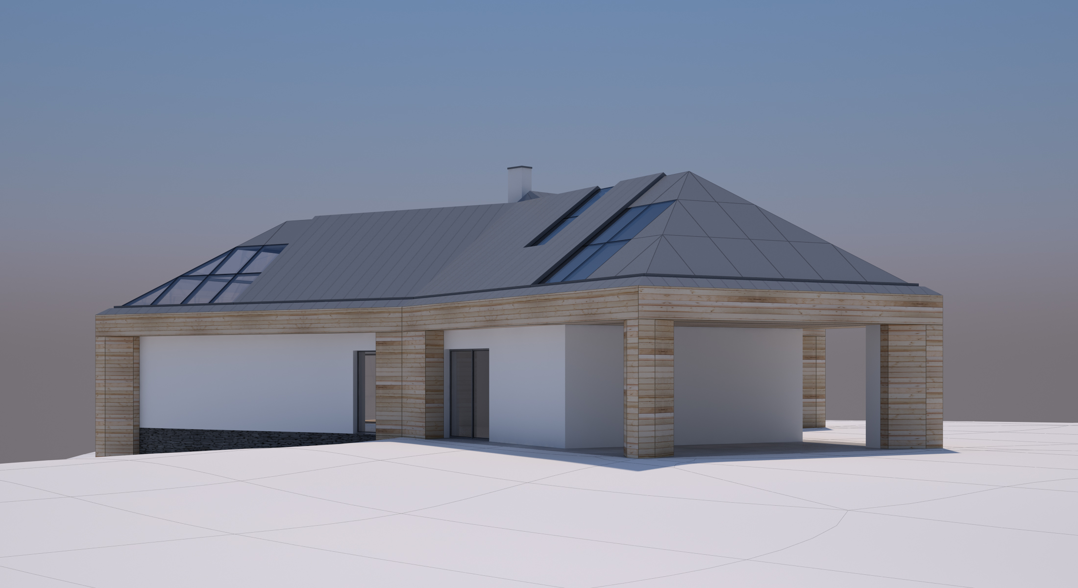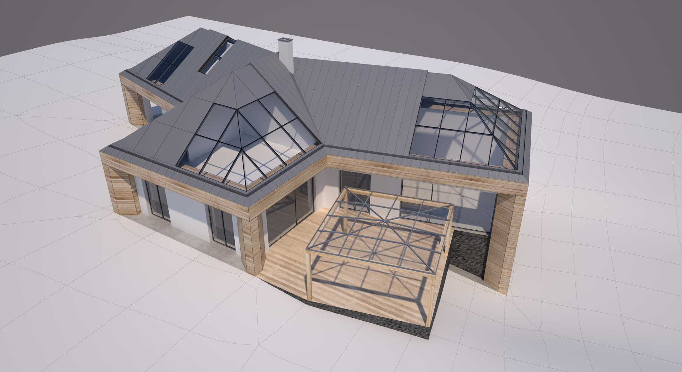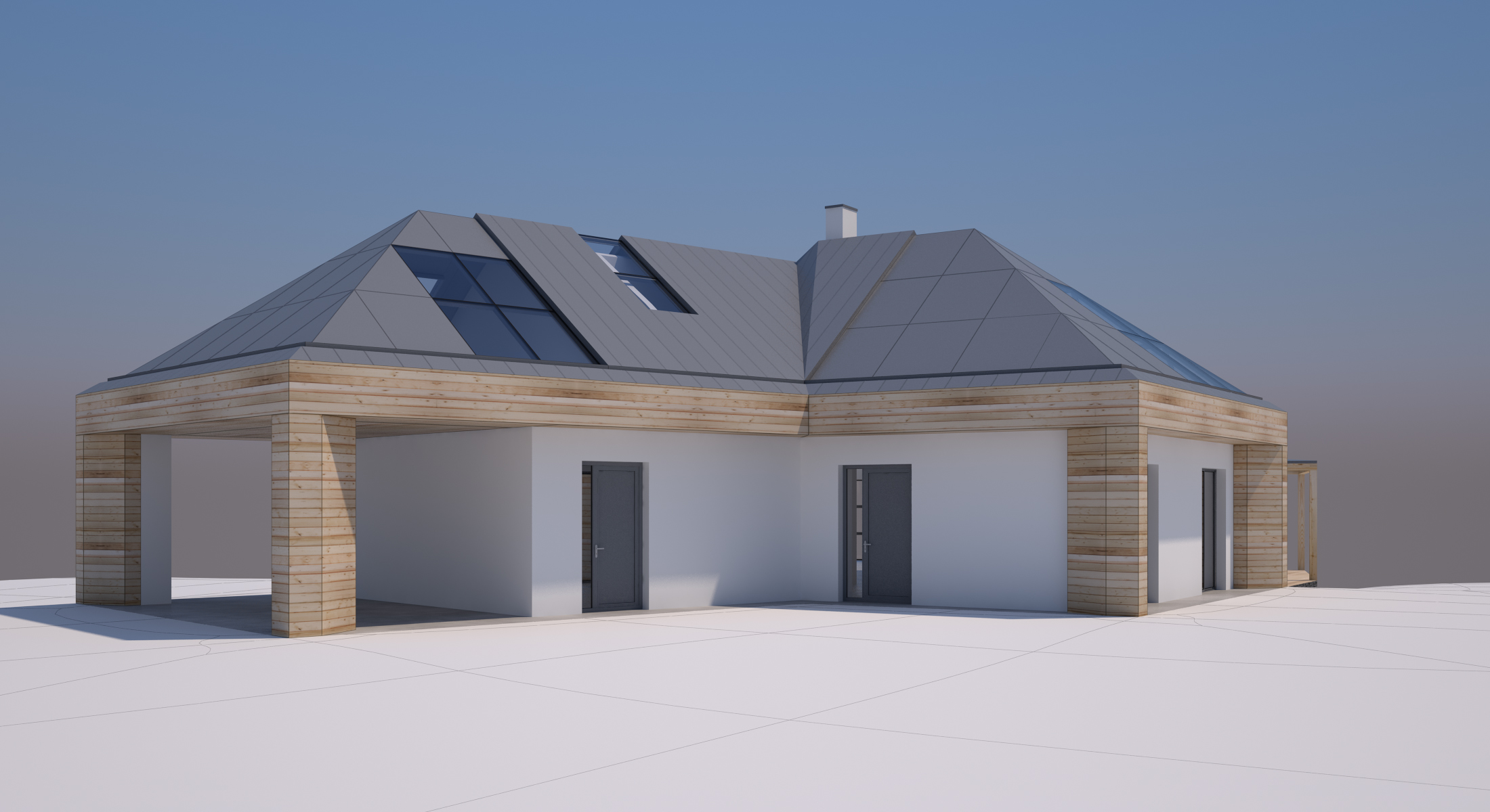 V novém návrhu zůstává zachován původní tvar střechy, ale dojde k výměně stávajících keramických střešních tašek za bezúdržbový titano-zinkový systém a z velké části jsou začleněny i prosklené plochy. Kompletně je plánována výměna oken za nová hliníková s trojskly, většinou posuvná francouzská.