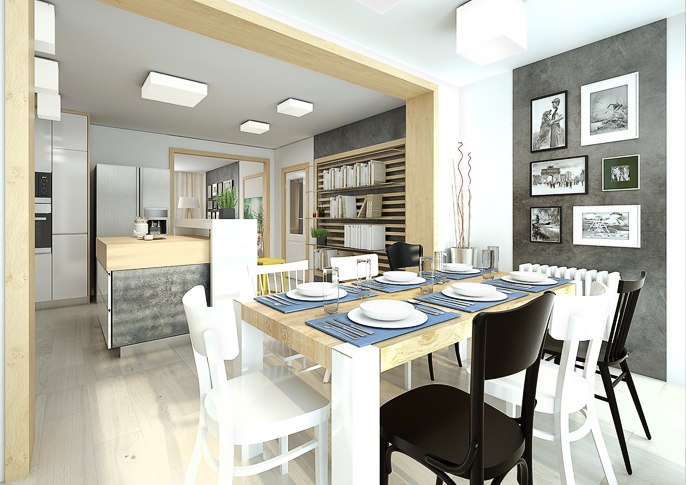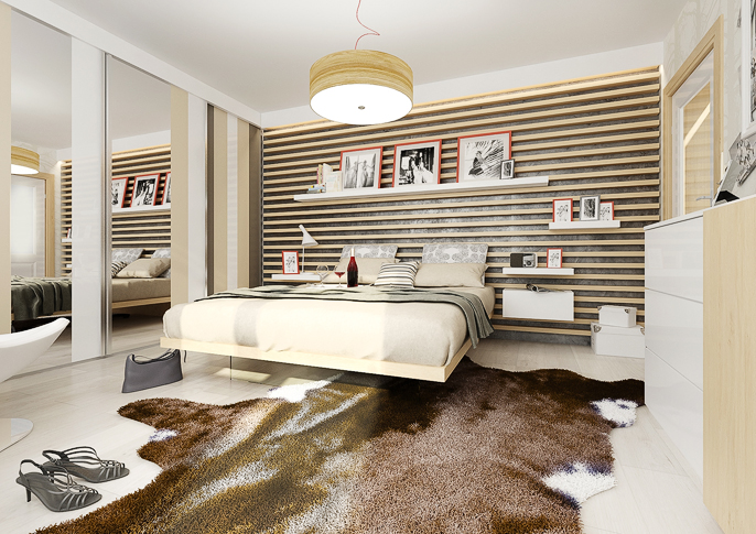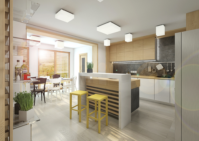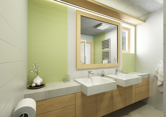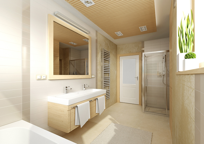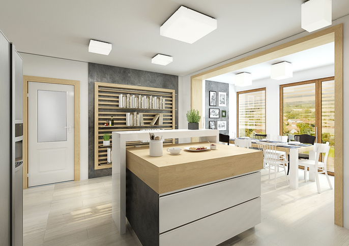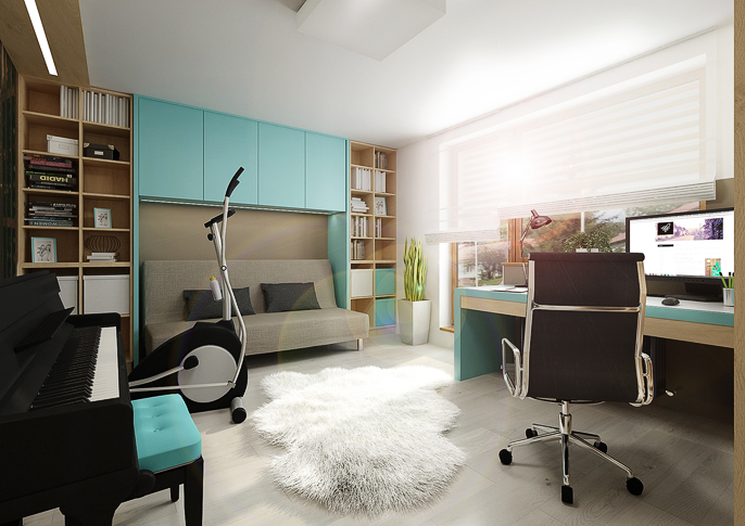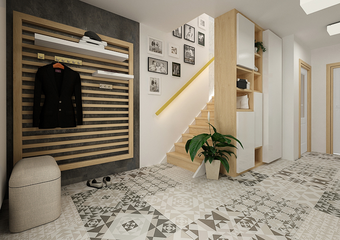 Redesign domu nedaleko Brna ve světlých barvách béžové a krémové, které jsou doplněny v některých místnostech výraznými barvy antracitové stěrky a tyrkysovým laminem. V interiéru se opakuje prvek dřevěného obložení - rámu s hranolky, mezi které lze umístit police, věšáky a jiné.
