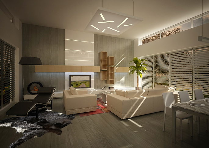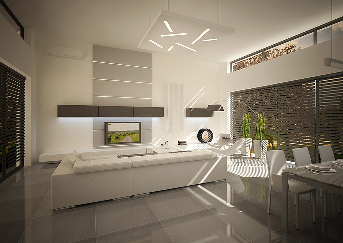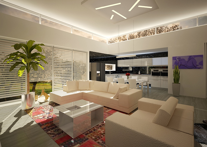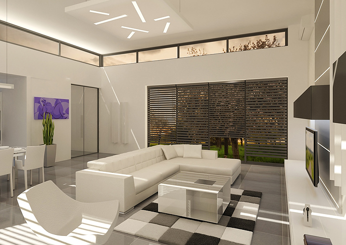 Návrh minimalistického interiéru rodinného domu