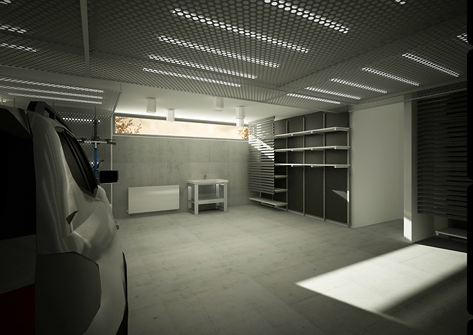 Čisté řešení, tvarově minimalistického interiéru rodinného domu, kterému dominují obrovské skleněné plochy s výhledem do krajiny. Součástí zadání bylo vyřešení všech detailů včetně návrhu interiéru garáží v industriálním duchu.