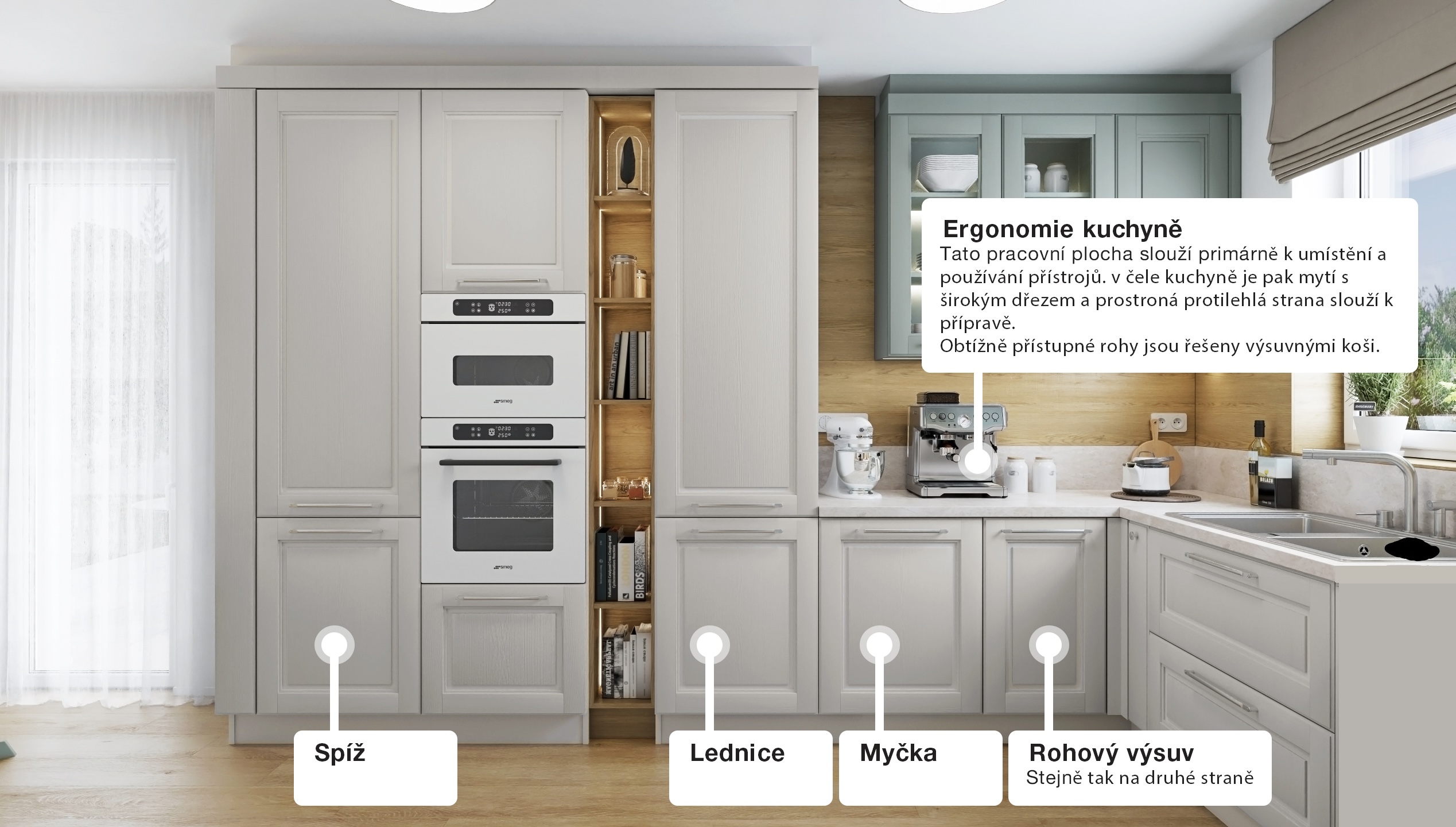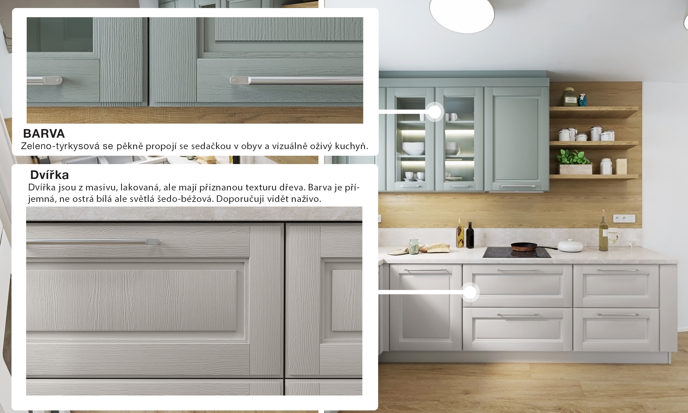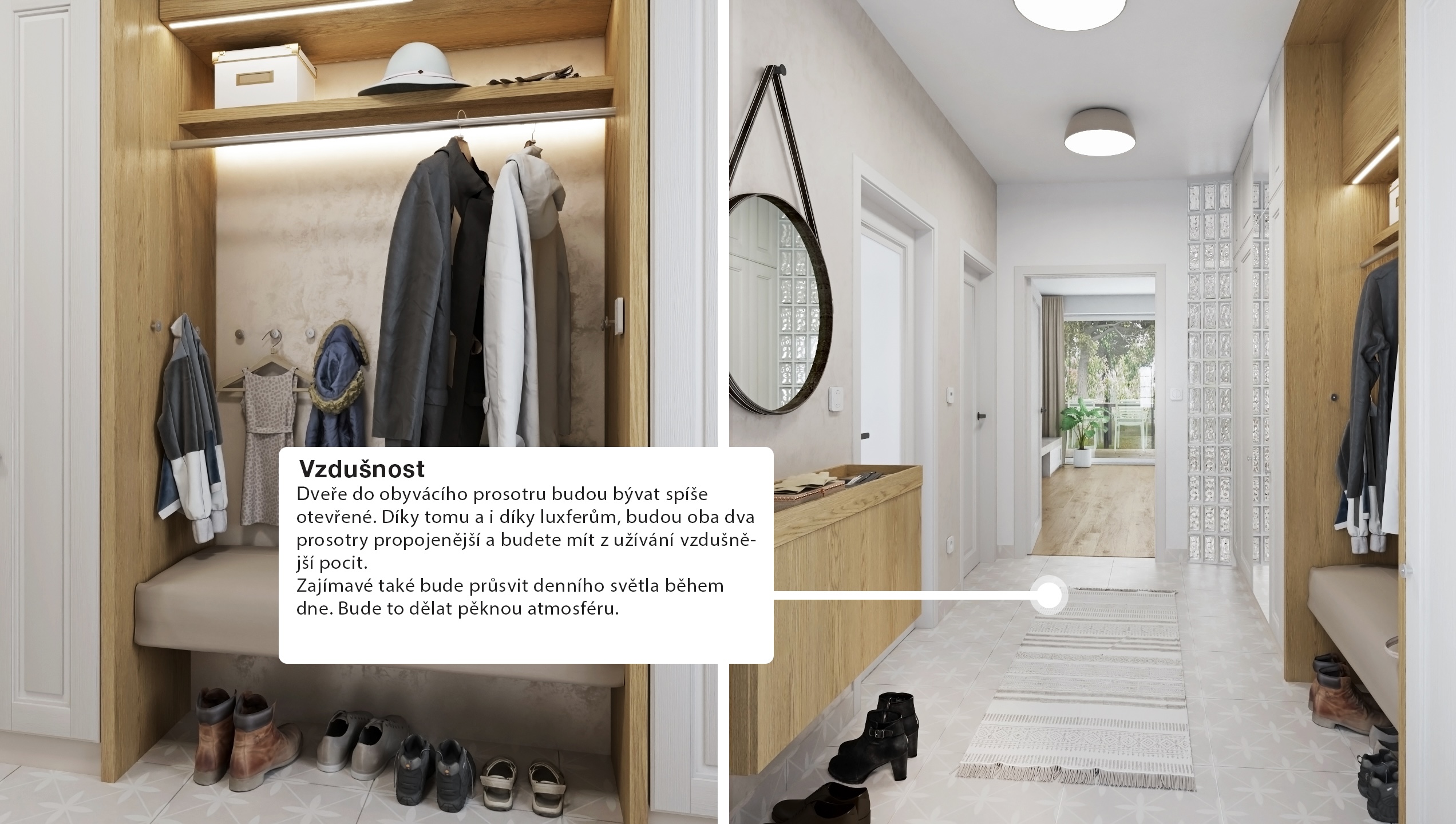 Dřevěné obklady, otevřené police a tradičně tvarovaná dvířka kuchyňských skříněk podtrhují rustikální charakter prostoru. Dispozice domu je navržena s důrazem na praktičnost a pohodlí každodenního života, od prostorné kuchyně propojené s jídelnou až po promyšlené úložné prostory v chodbě. Každý detail podporuje pocit domova, kde se přirozeně setkává rodina i přátelé.