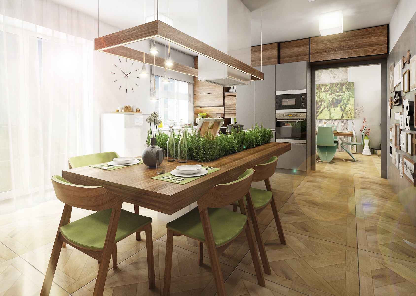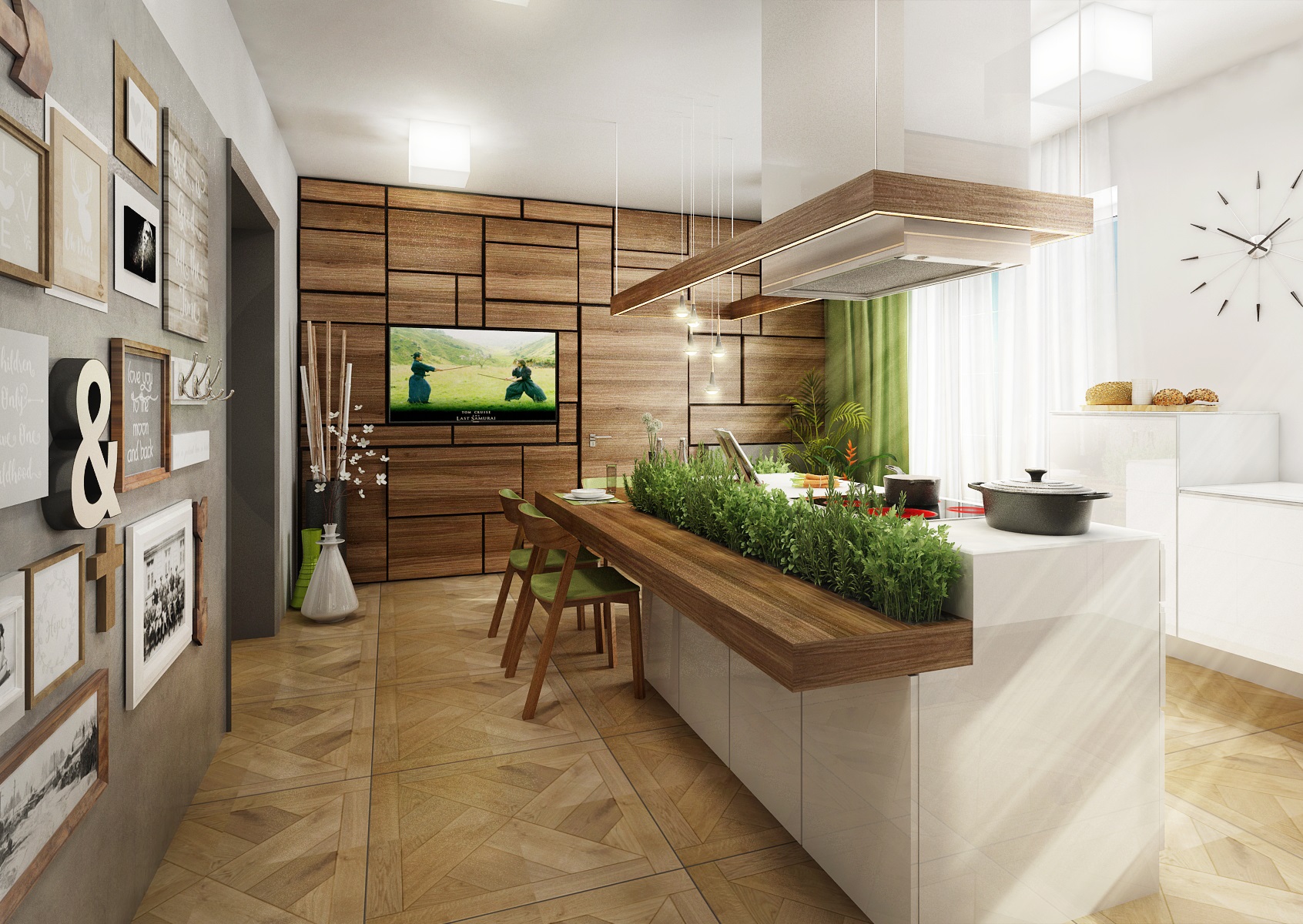 Zajímavým prvkem je prostor pro živé rostliny - bylinky, lemující kuchyňský ostrůvek.