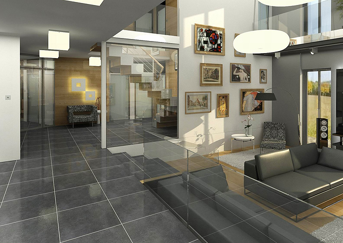 Elegance a stylovost interiéru této vily byla dosažena kombinací luxusních prvků, barevného kontrastu a lesku, vhodným využitím světel, luxusními kusy nábytku a originálním řešením požadavků zákazníka.