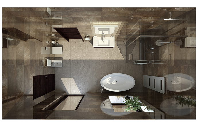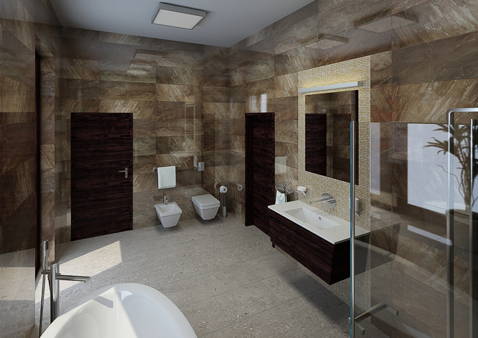 Luxusní koupelna s kamenným obkladem stěn
