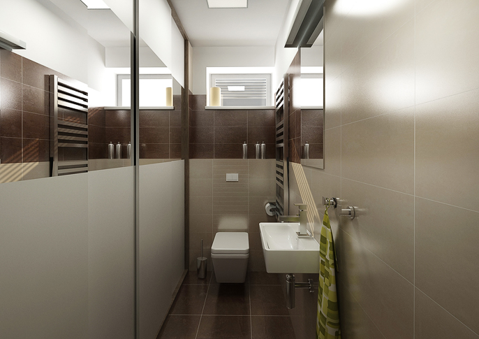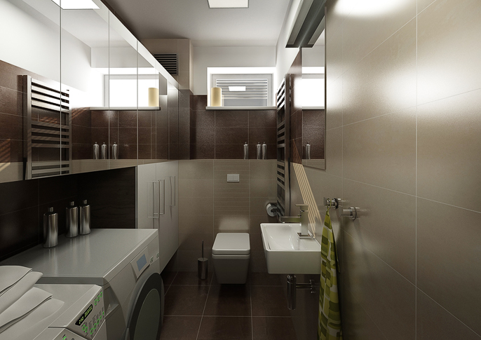 Moderní design interiéru koupelny v hnědé