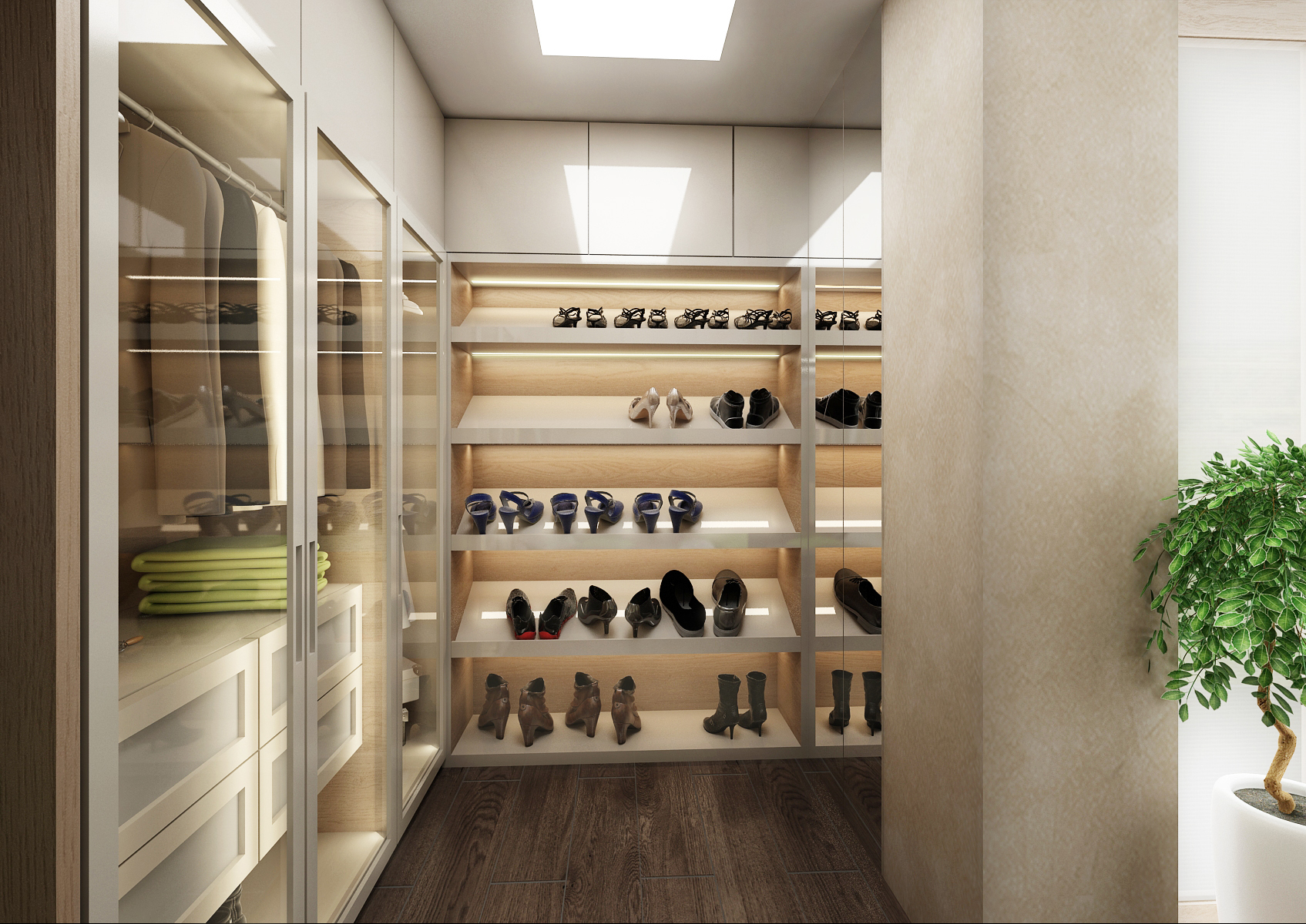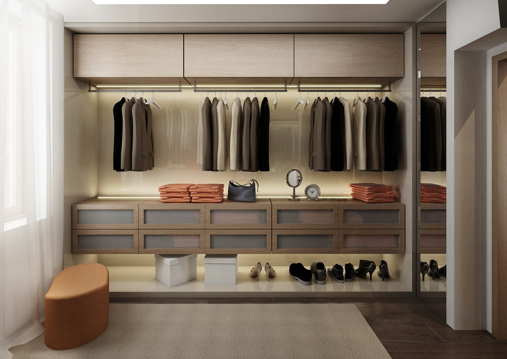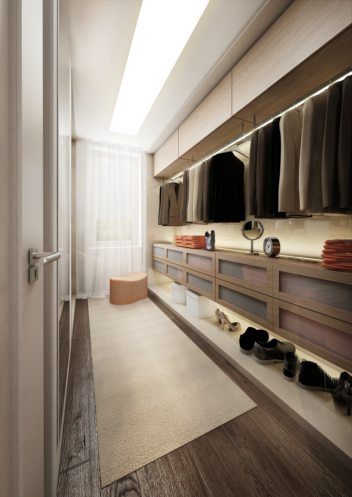 Návrh ložnice se šatnou ve vedlejším pokoji.