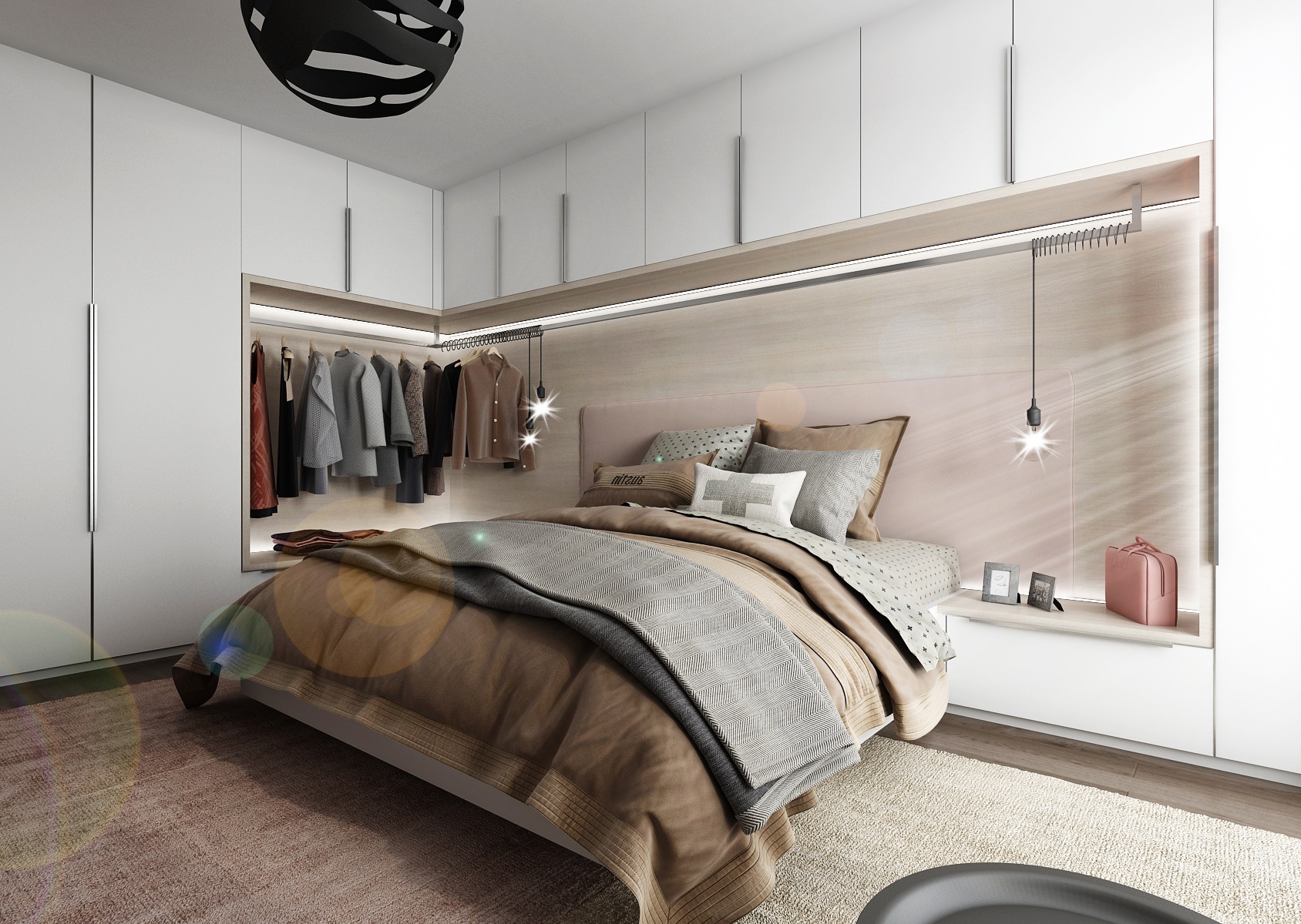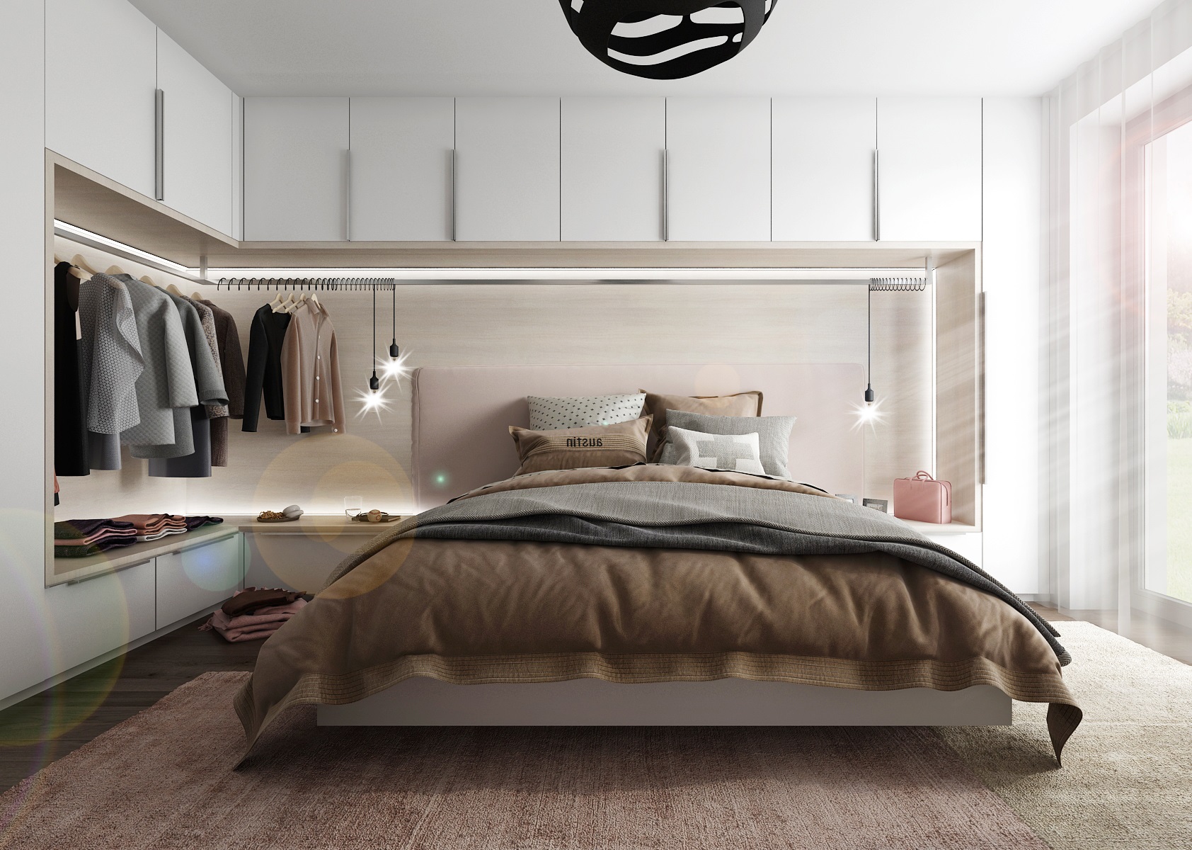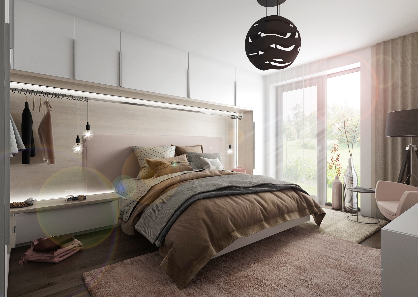 Šatní tyč nad postelí