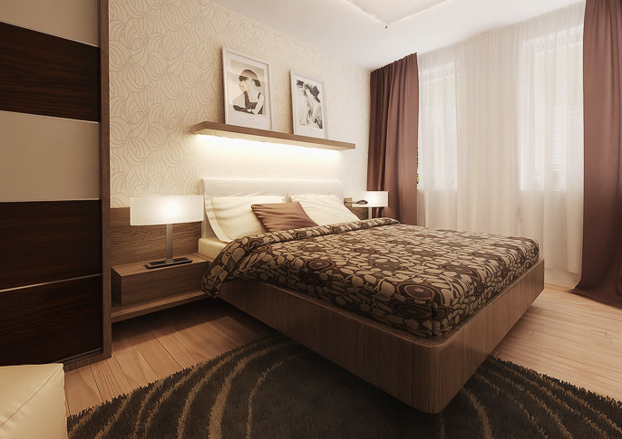 Návrh interiéru ložnice v zemitých odstínech