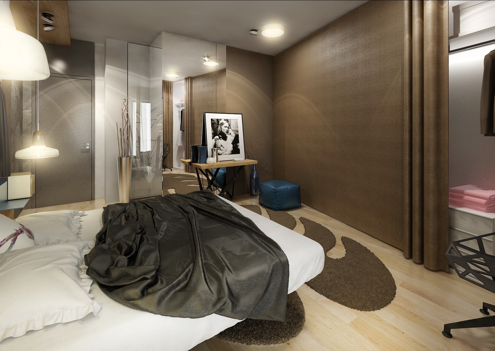 Design moderního interiéru pánské ložnice