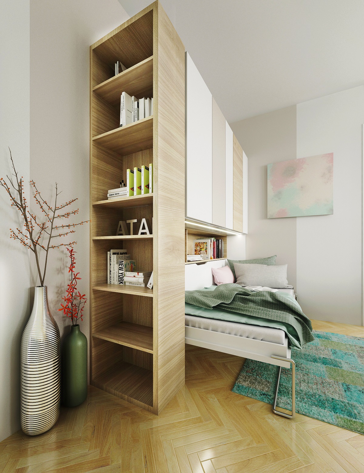 výklopné lůžko, které je schované ve skříňové sestavě. Jednoduchým manévrem se postel vyklopí a obývací pokoj se promění na pokoj pro hosta. Jde o komfortní lůžko s kvalitní matrací, přespávání na gauči je minulostí.