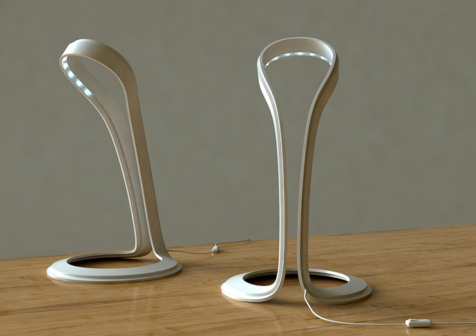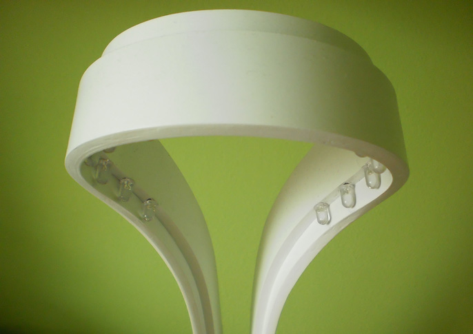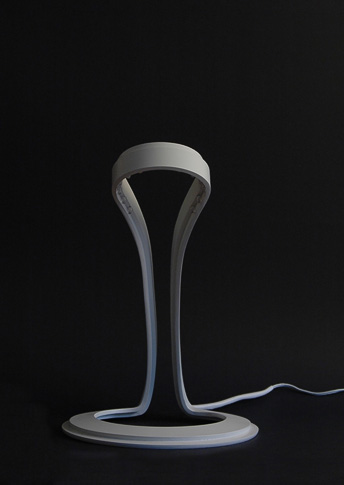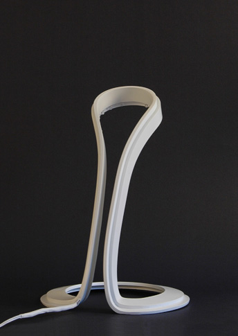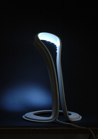 Lapma je navržena tak, aby dobře prezentovala možnosti materiálu Hi-macs, který se dá z tepla takřka neomezeně tvarovat. Lampa je tvořena dvěma vrstevnicemi, z nichž ta spodní obsahuje el. obvod a diody a vrchní funguje jako stínitko, které usměrňuje světlo. Design Martin Foret.